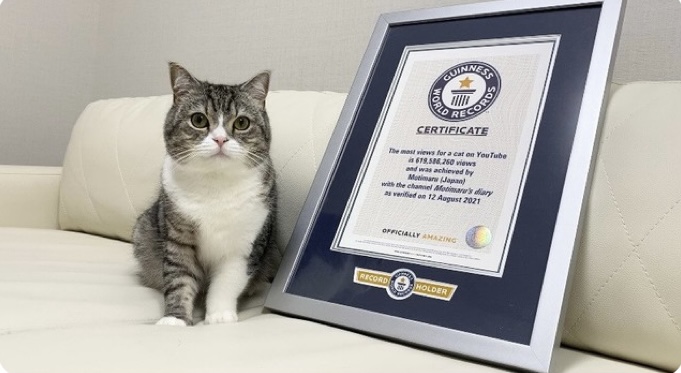 ついには2021年8月に「YouTubeで最も視聴された猫」としてギネス世界記録に認定。